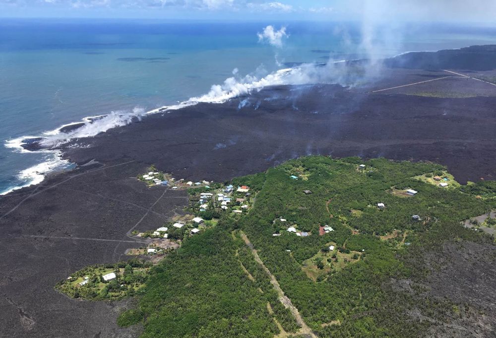Mise à jour du 06/06/2018 : C’est le cœur serré que nous avons appris ce matin que les Kapoho Tidepools sont peut-être en train de vivre leurs derniers instants, désormais à la merci de la lave que dégage sans relâche, mais de façon moins intense que ces derniers jours, la fissure numéro 8. Cette lave qui a fait disparaître la très belle Kapoho Bay des cartes hier, avance désormais dans l’océan peu profond à cet endroit, engloutissant les magnifiques coraux qui peuplaient la baie. L’extension mesure à l’heure où j’écris ces lignes, près d’un kilomètre et ne cesse de s'agrandir. Le bilan provisoire est lourd pour Kapoho : une grande partie des plus de 350 maisons se trouvant à Kapoho Beach Lots ont été détruites, et la quasi-totalité de celles situées à Vacation-Land se sont fait engloutir par la lave. C'est un petit coin de paradis qui vient de disparaître. Le sommet du Kilauea a de nouveau été secoué par un fort séisme de 5.5, engendrant un large panache de fumée. Il faut s’attendre à ce que ce phénomène se reproduise dans les prochaines heures.