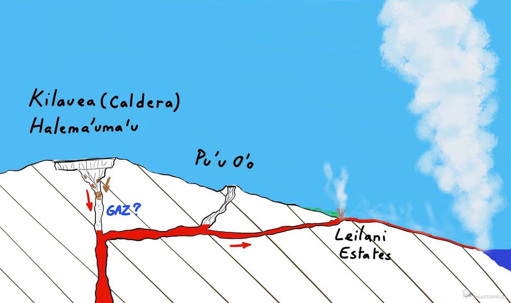 Le Kilauea pour sa part est sous haute surveillance. Il l’est en permanence, mais cette fois-ci, d’autres conséquences des écoulements de lave à l’est sont à prévoir: les scientifiques présents sur place prédisent une forte explosion. Cette crainte est assez simple à comprendre en découpant le phénomène récent par étapes :