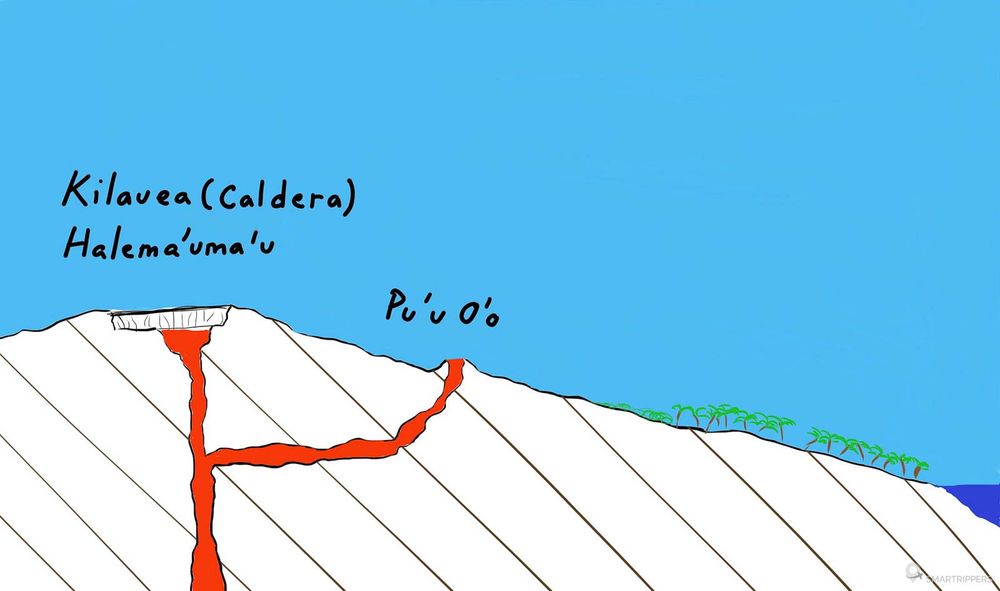 - Du gaz sous pression a donc de grandes chances d’être emprisonné entre le flot de lave souterrain et les éboulis au fond du cratère du Halemaʻumaʻu.