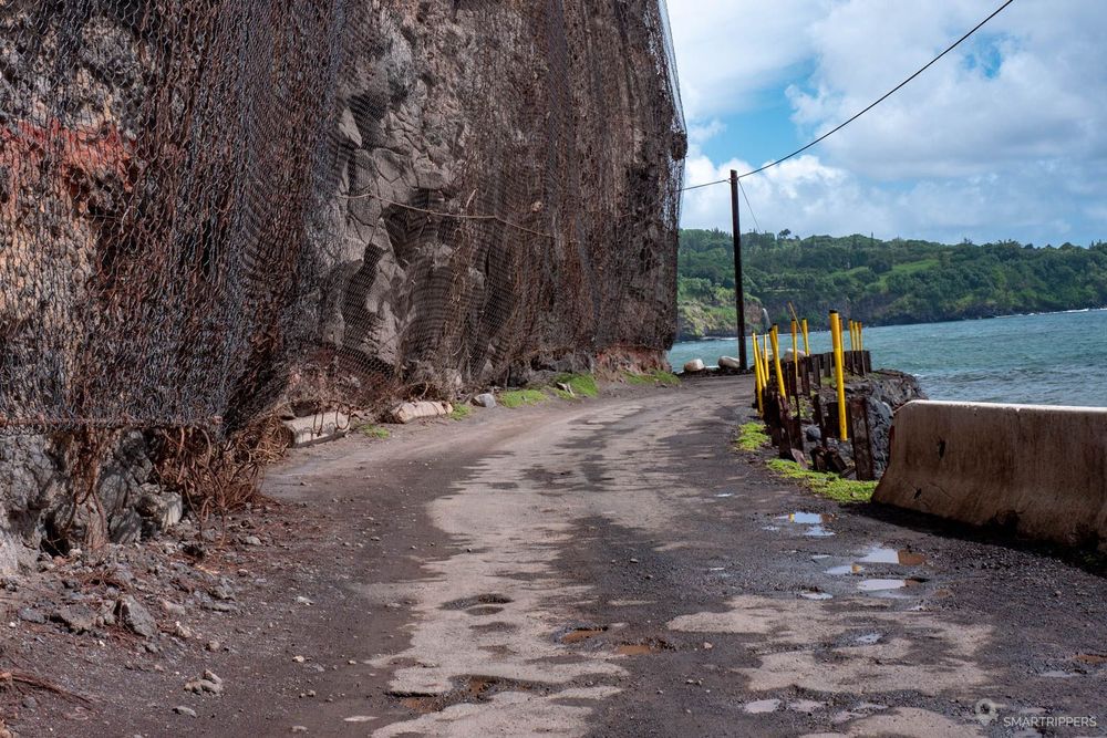 Si vous souhaitez continuer la route de Hāna jusqu'à son terme au Kalepa Gulch et pourquoi pas tenter un grand tour de l'est de Maui via la Piilani Highway, vous serez amenés à emprunter la section la plus abrupte de la route de Hāna qui longe l'océan à flanc de falaises sur quelques centaines de mètres, et parfois sur une seule voie!