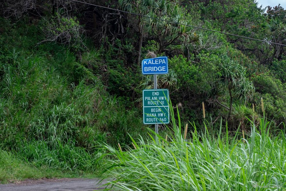 Nous voilà maintenant au terme des 109 km de la route de Hāna. Un petit panneau vous avertira de la jonction entre la Hāna Highway et la Piiliani Highway qui prendra le relai au niveau du Kalepa Gulch.