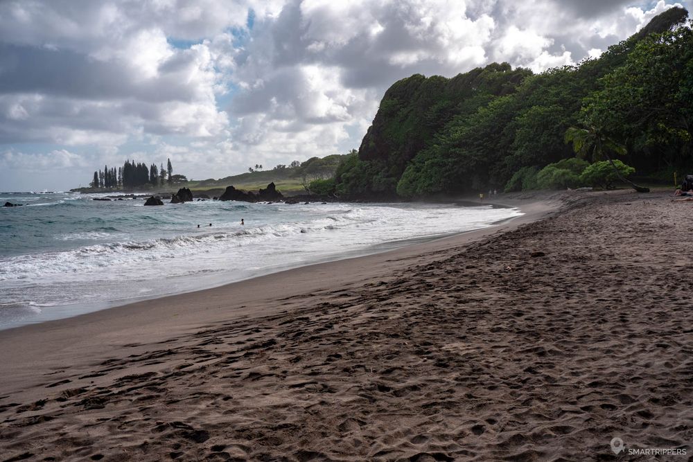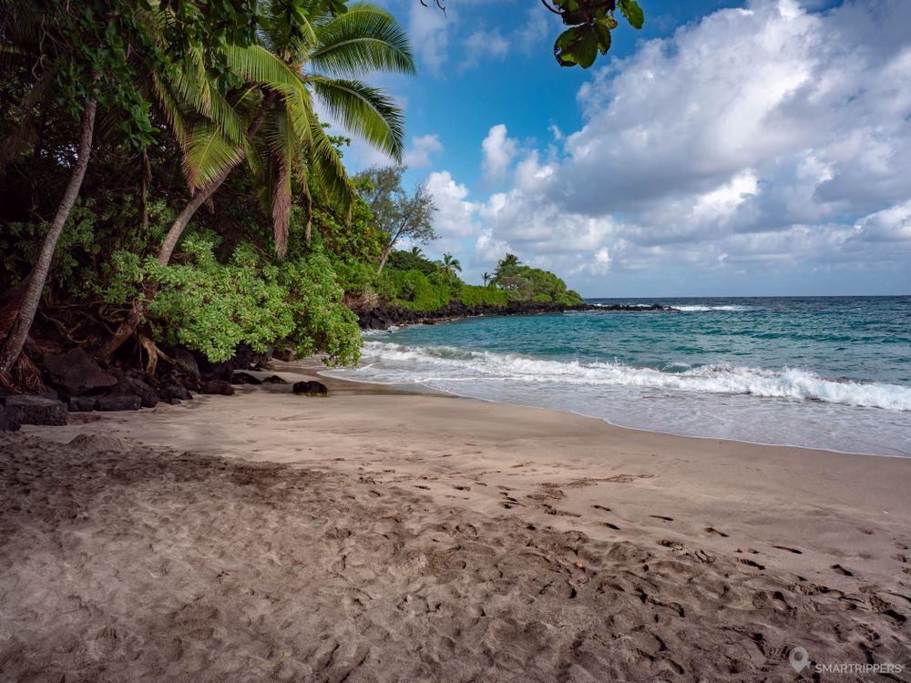Cette grande plage sauvage de sable noir d'environ 400m se situe au nord de Hāna. On viendra plutôt ici pour se promener le long de l'océan que pour s'y baigner. La balade au calme au son des vagues est d'ailleurs très agréable et le paysage est charmant ici, la baie de Hāna en toile de fond. Et en plus il n'y a personne!