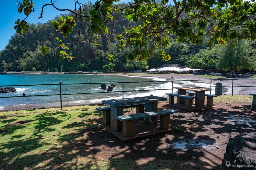 Le Hana Beach Park propose des sanitaires avec douche ainsi que de nombreuses tables de pique-nique au bord de l'eau. C'est d'ailleurs un peu la seule chose vraiment intéressante ici car la plage ne donne pas trop envie de s'y baigner.