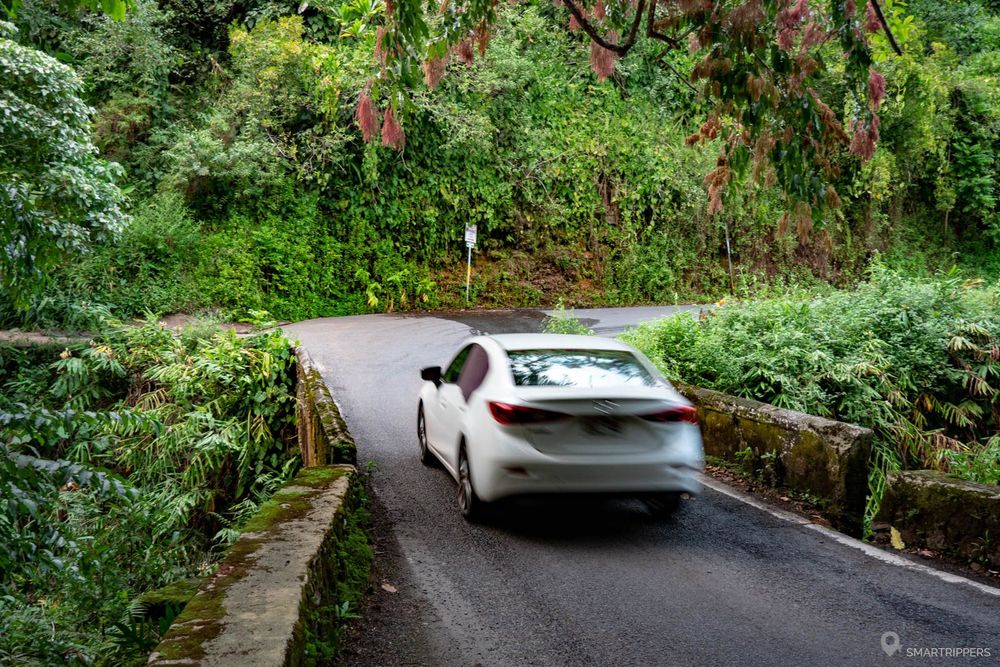 Premièrement, sachez qu'il faudra vous attendre à prendre votre mal en patience tout au long de votre road-trip sur la Hāna Highway car nombreux sont les touristes apeurés qui roulent très très lentement dans les virages, voir s'arrêtent dès que c'est un peu serré! Du coup le trajet semble long, très long!