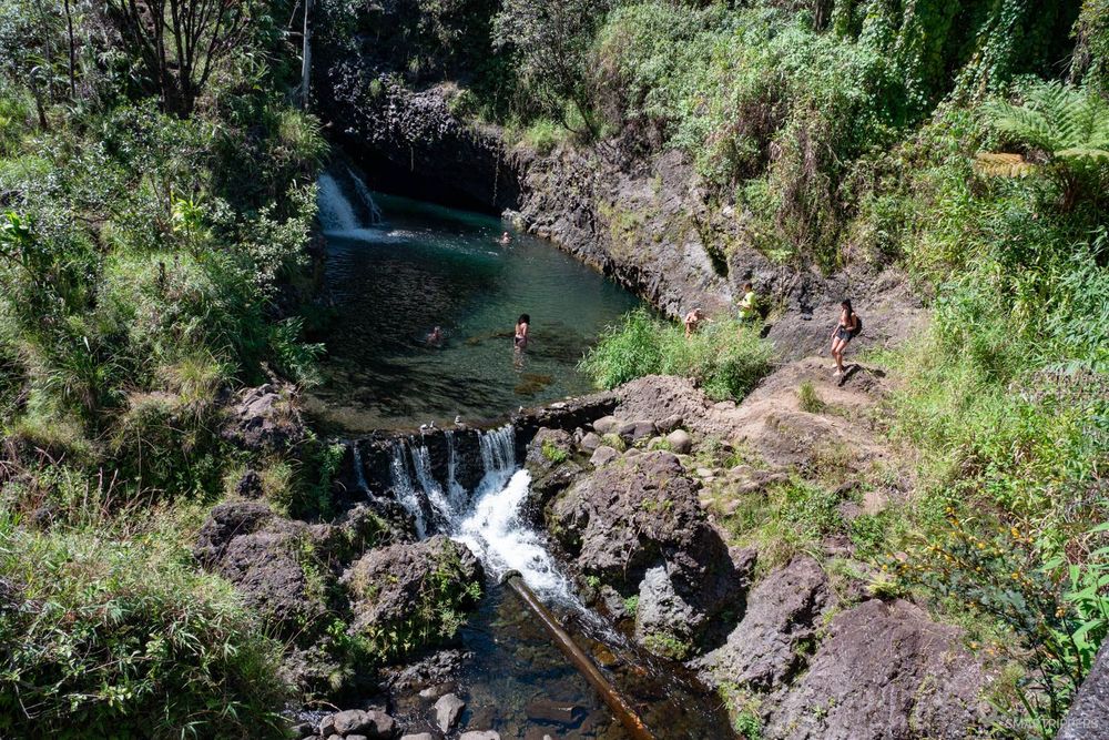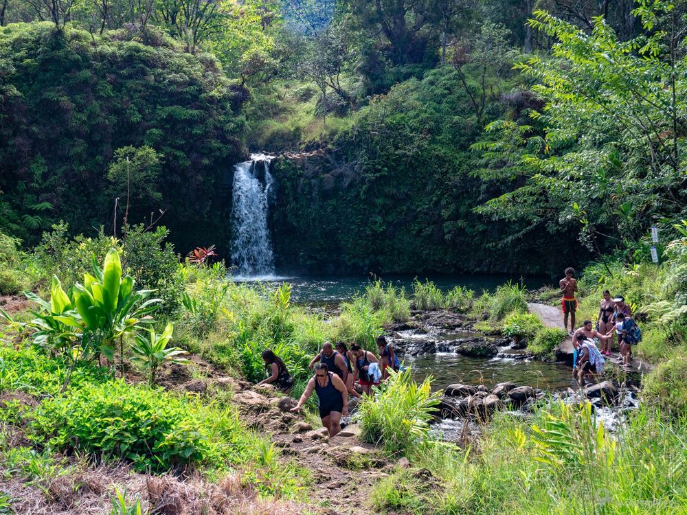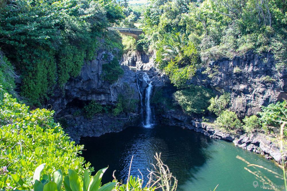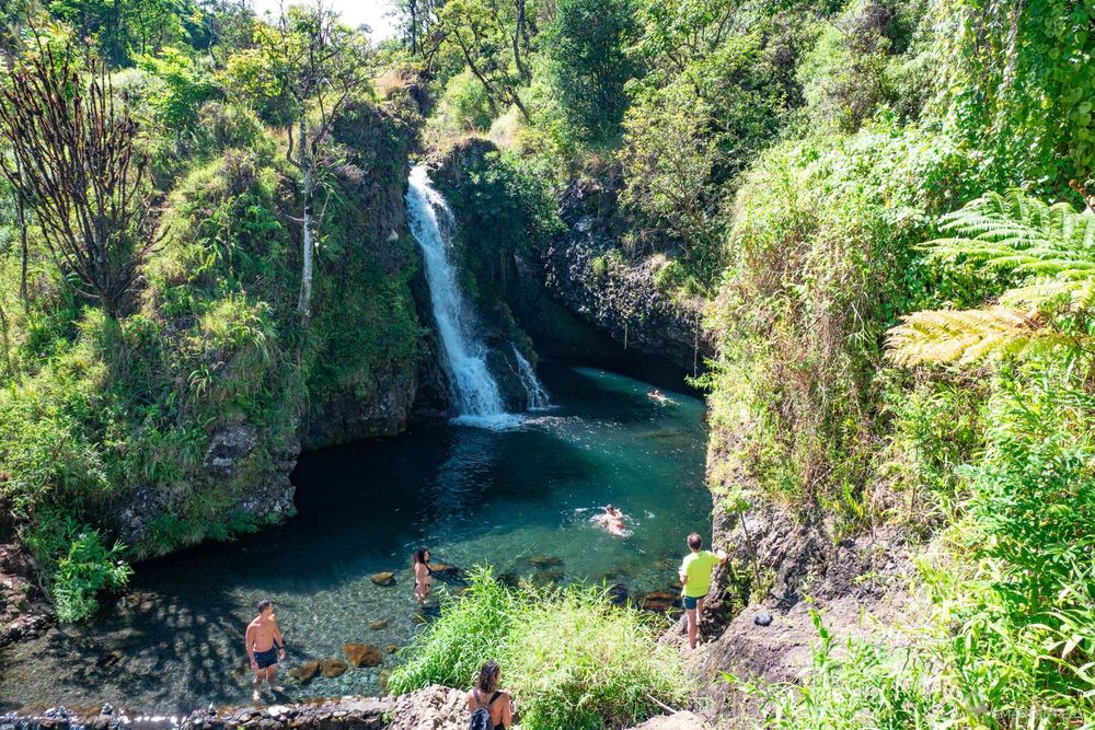 Ces cascades sont les premières que l'on pourra voir sur la route de Hāna. Elles sont faciles d'accès grâce à un grand parking en bord de route, mais du coup également très fréquentées.
