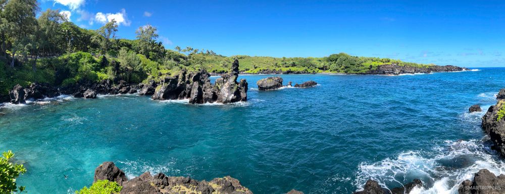 Situé au nord d'Hāna, ce State Park est un petit bijou! Ici la lave noire déchiquetée rencontre le bleu profond de l'océan. Le tapis végétal qui recouvre les roches noires offre un contraste saisissant dans ce beau paysage. L'on pourrait ainsi rester des heures à contempler la mer et les vagues se fracassant sur les rochers, projetant des geysers de plusieurs dizaines de mètres de haut!