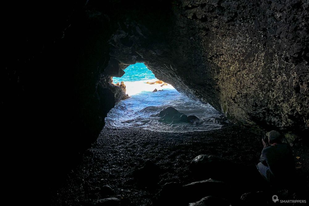A droite de Black Sand Beach se trouve une petite caverne qu'il est possible d'explorer lorsque la marée le permet, en se faufilant par le petit trou dont l'entrée se trouve sur la plage.
