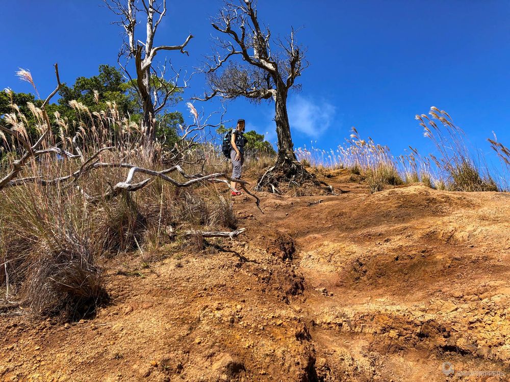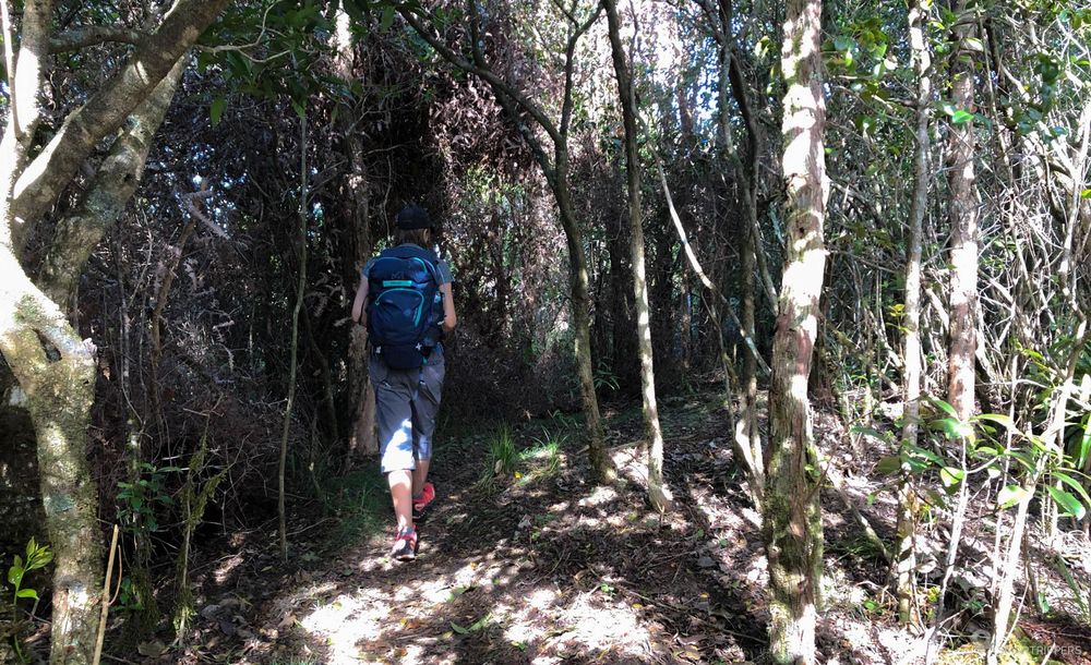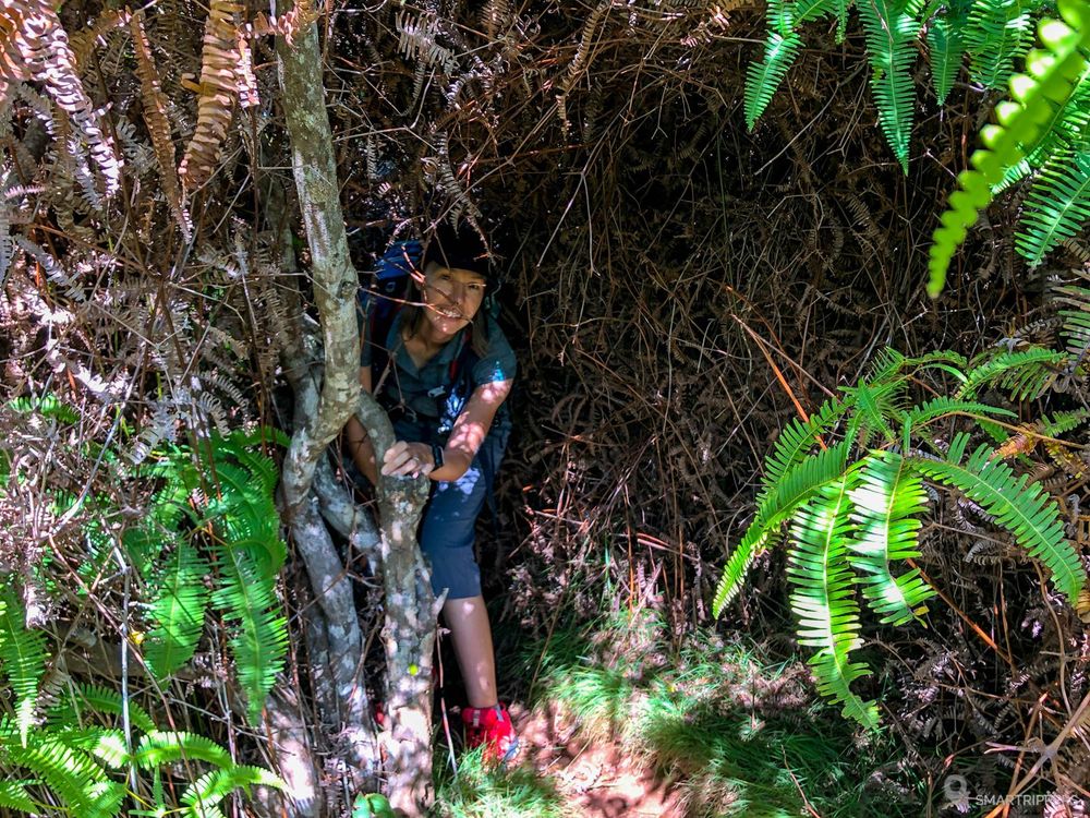 On alterne ensuite des parties tantôt dans les fougères, tantôt dans les arbustes, avant de rejoindre le sommet de la ridge, qui sera marqué par la disparition petit à petit des fougères! A ce stade, quelques petites portions du sentier pourront nous donner du fil à retordre si le chemin est glissant, et nécessiteront la plus grande prudence. Néanmoins nous avons trouvé ces portions un peu plus faciles que celles du début du trail.