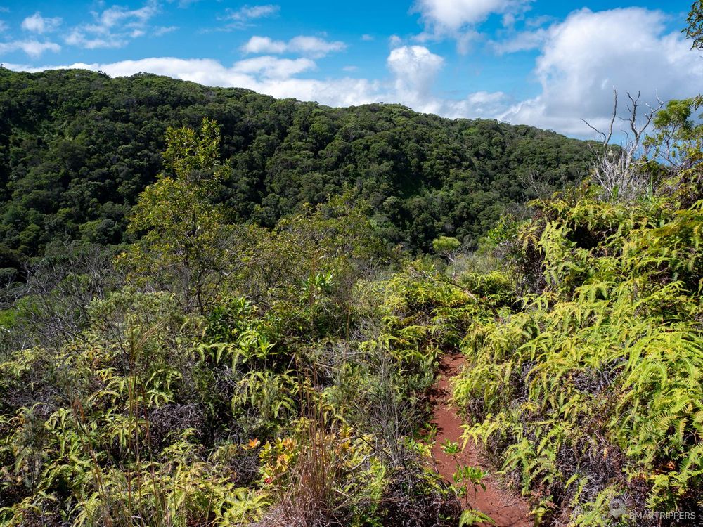 Avant toutes choses, il faut savoir que ce sentier n'est plus entretenu par le Kokee State Park depuis de nombreuses années suite à des ouragans successifs qui ont endommagé le sentier. On en voit d'ailleurs encore les séquelles car de nombreux arbres couchés sont toujours en travers du chemin.