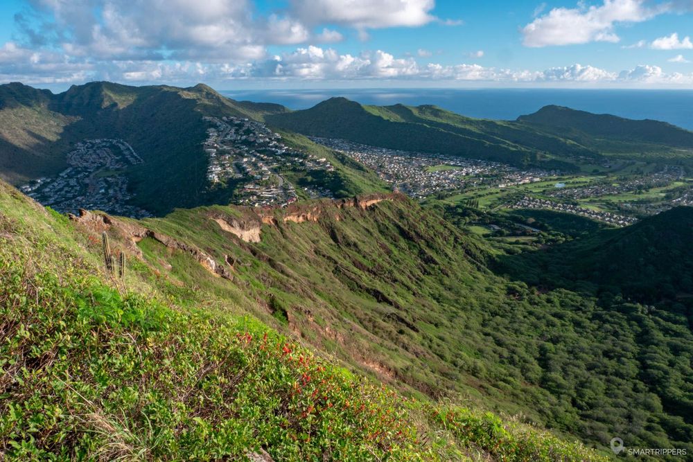 Mais ne vous arrêtez pas là! A droite de ce bunker, le chemin continue dans les broussailles pour atteindre plusieurs points de vue sur l'intérieur du cratère. D'ici, le panorama vous permettra de voir facilement Diamond Head, Hanauma Bay, la pointe sud-est de l'île et une partie de Waikiki. C'est vraiment joli! C'est d'ailleurs ici qu'il faudra vous rendre si vous décidez d'assister au lever de soleil.