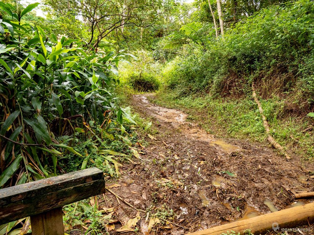 Il se peut que le sentier soit très boueux, surtout sur les 100 premiers mètres car l'essentiel de la balade se fait à l'ombre des arbres. Mais heureusement, ce sont ici plus des marres de boue qui mouillent plutôt que de la terre glaise qui fait glisser comme à beaucoup d'autres endroits de Kauai.