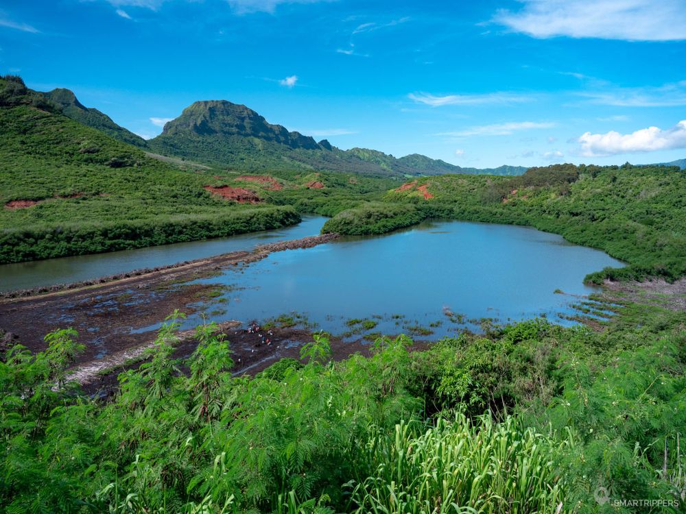 Voici un beau point de vue à découvrir lors d'une virée près de Lihue, qui s'ouvre sur un petit fishpond (étang où les poissons restent prisonniers à la marée basse) se trouvant au pied de la longue ridge qui sépare Lihue de Poipu.