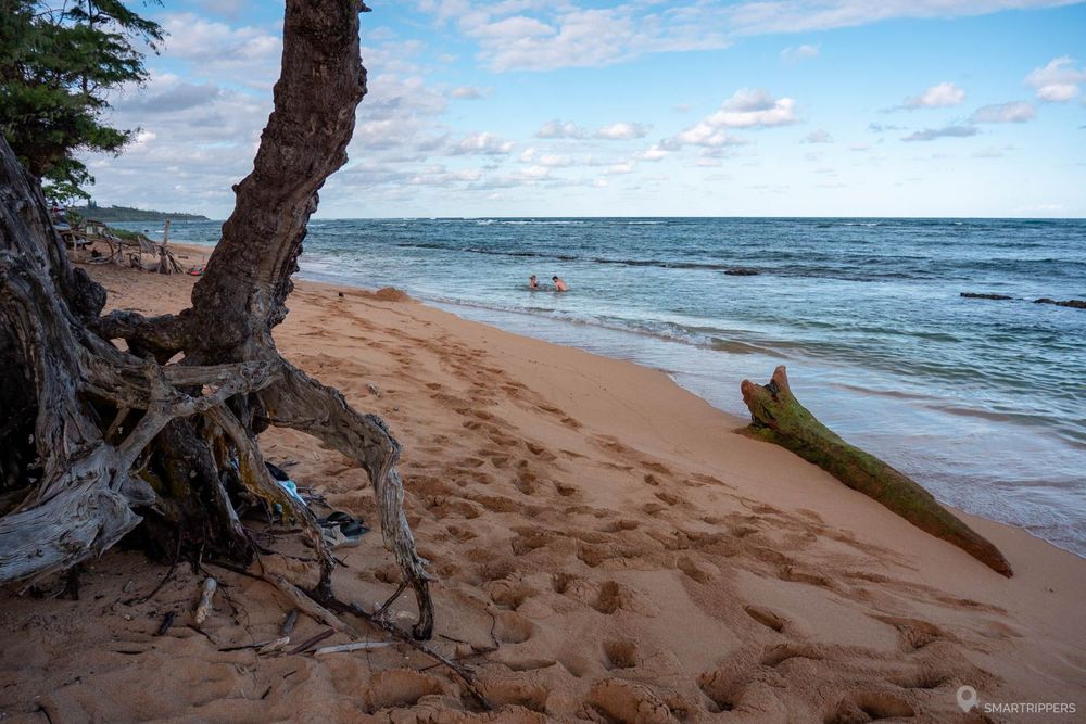 La grande et longe plage de Kapa'a commence au début de la célèbre promenade et piste cyclable de Ke Ala Hele Makalae. Mais bien que cette plage soit située au coeur de Kapa'a, les infrastructures du beach park sont un peu à l'abandon, la faute probablement à la mauvaise fréquentation des sanitaires qui sont souvent fermés... Dommage car la plage en elle-même est loin d'être moche malgré le bois flotté qui s'accumule par endroit.
