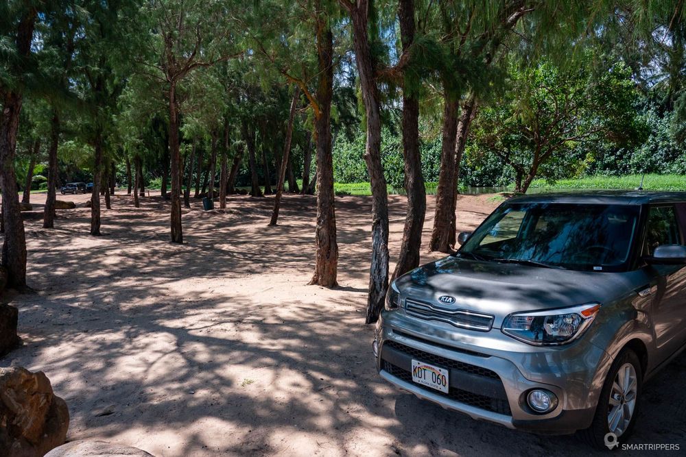 Un petit parking permet de se stationner au début de la plage. L'accès est situé juste après le pont sur la Wailua River et n'est possible que dans le sens sud-nord. Si vous venez du nord, il faudra faire demi-tour un peu plus loin et revenir sur vos pas.