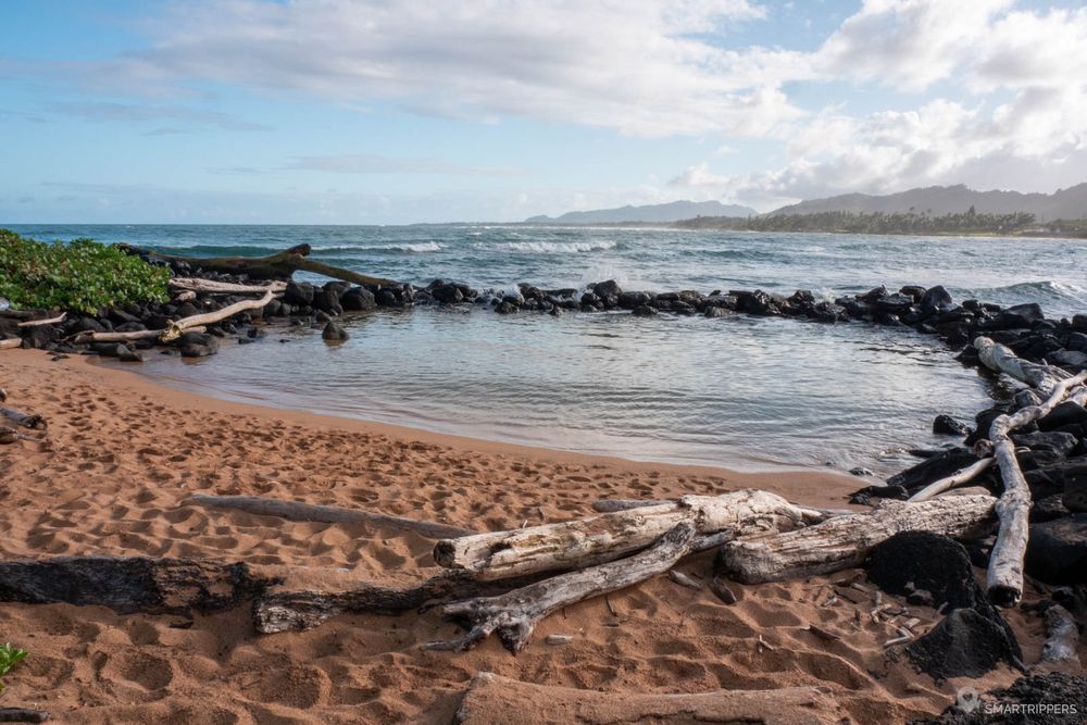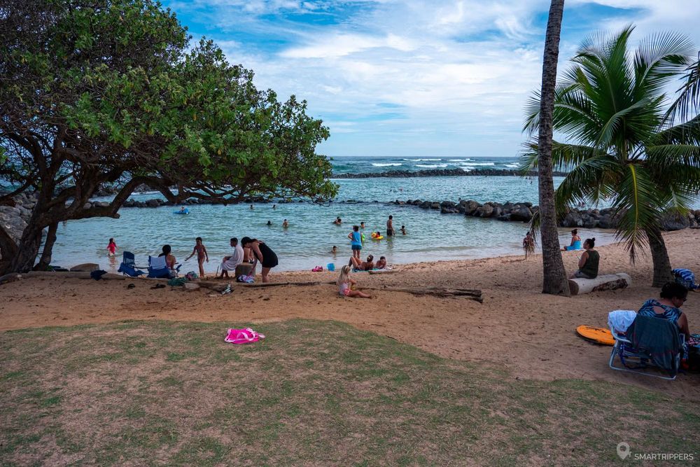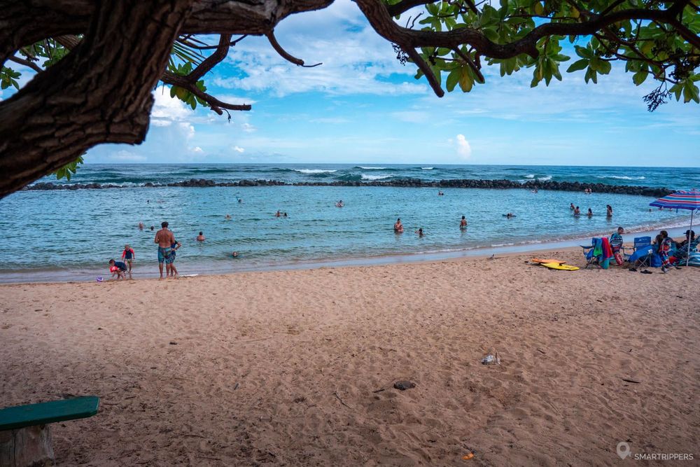 Cette petite plage située en bordure des resorts de Wailua offre un coin de baignade agréable grâce à un petit lagon artificiel situé tout au bout de la plage. Le petit bassin est formé d'une digue fermée qui l'isole des tumultes de l'océan, ne laissant passer que les grosses vagues qui viennent le remplir de temps à autre.