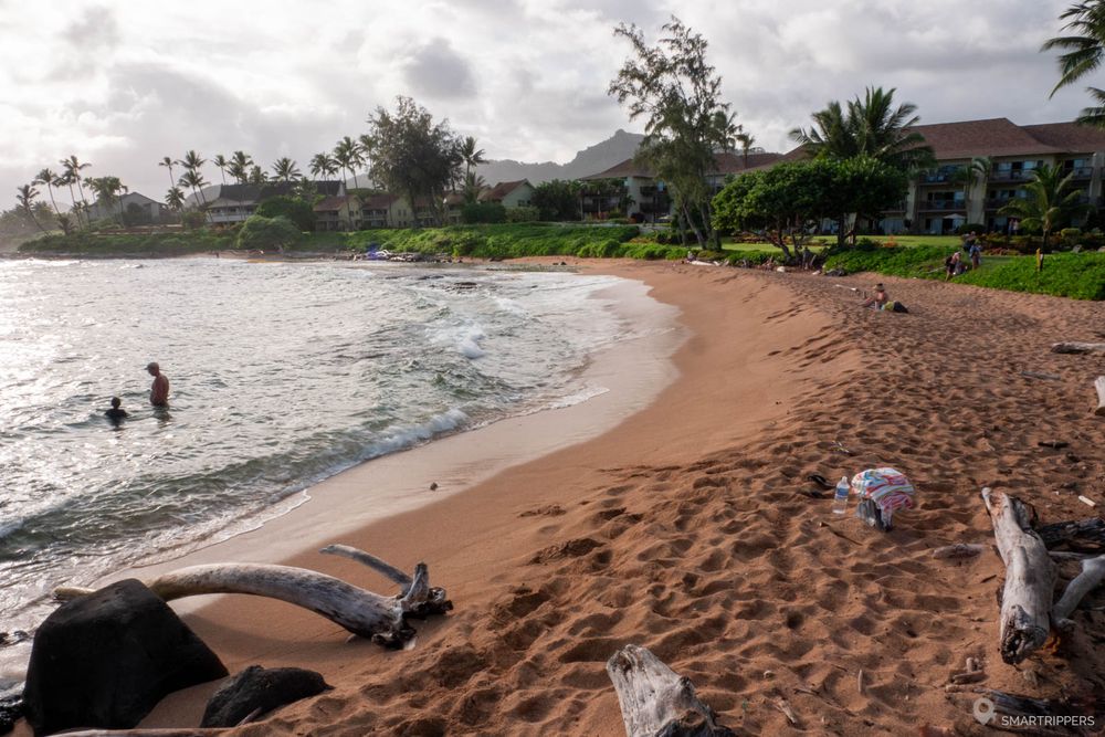 Voici probablement la plage la plus animée de Kauai! Ici, outre la plage en demi-cercle qui est intéressante pour la baignade, on viendra surtout chercher l'ambiance de la promenade du bord de mer qui se déroule le long du grand Marriott avec ses rangées de cocotiers et ses pelouses impeccables.