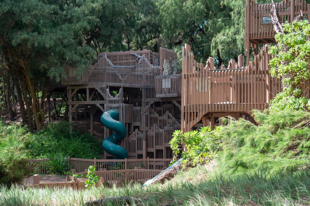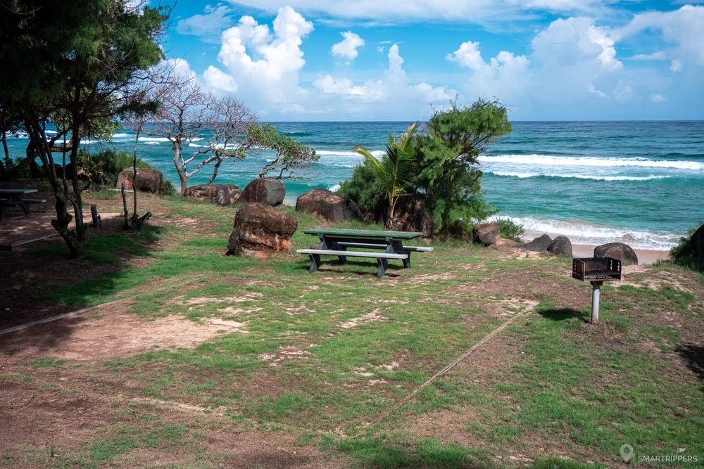 Toujours côté sud, on trouve également un grand terrain de camping au calme avec différents types et tailles d'emplacements et équipé d'un grand bloc sanitaire plutôt basic. A proximité du camping, une étrange aire de jeux, le Kamalani Play Bridge, ravira les enfants. La structure est immense et ressemble à un château de bois. L'ensemble semblait un peu à l'abandon car peu utilisé, mais l'état était bon.