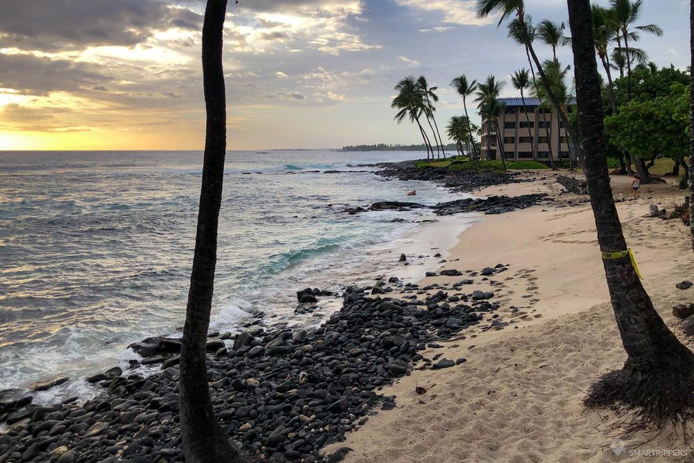 Située près du centre ville de Kona, cette charmante petite plage de sable clair est agréable au coucher du soleil. Son cadre plein ouest avec ses quelques cocotiers en font un bon spot pour s'y prélasser en fin de journée. Elle est également réputée pour ses vagues qui font le bonheur des surfeurs, par contre il sera difficile de nager ici.
