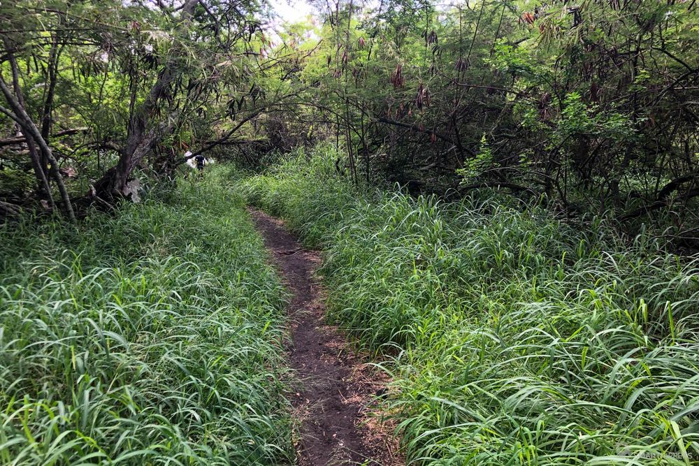 Le chemin est régulièrement entretenu mais la végétation poussant assez vite (surtout sur le premier kilomètre), il est possible que vous ayez à chasser avec les mains les hautes herbes poussant sur les côtés. Ceci ne fera que ralentir votre progression.