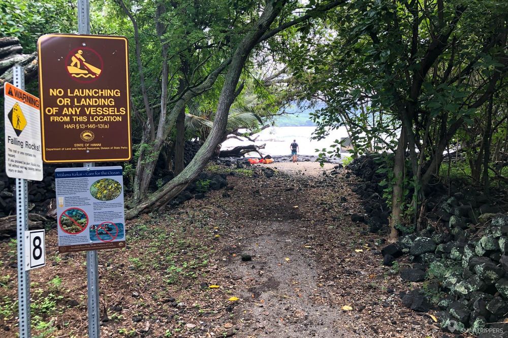 Le sentier débute depuis la Napoopoo Road. Un petit parking sommaire permet de se stationner à quelques dizaines de mètres du début du trail. Le départ du sentier n'est pas bien signalé. Il s'éloigne de la route à travers la végétation en direction de l'océan. Il suffit ensuite de le suivre jusqu'au bout.