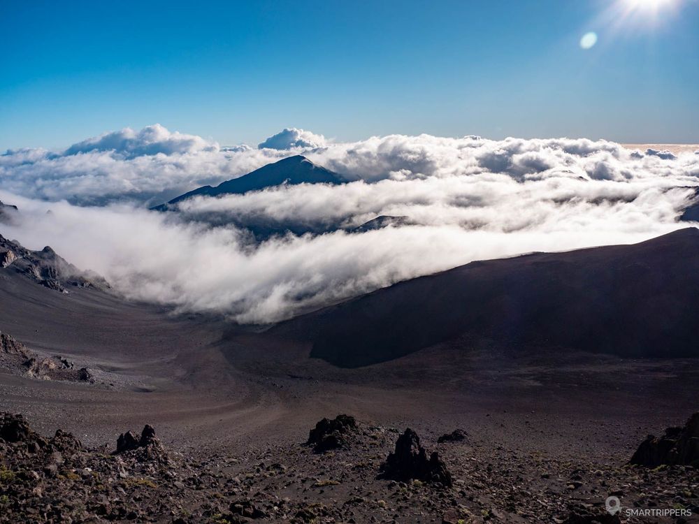 Le sommet du Haleakalā, le grand volcan de l'île de Maui, offre probablement l'un des panoramas les plus exceptionnel de l'archipel d'Hawaii! Du haut de ses 3055 mètres d'altitude, ce volcan endormi seulement depuis quelques centaines d'années, dévoile une magnifique caldeira à son sommet, tapissée de cratères et de roches colorées le tout surplombant la mer de nuages les jours de beau temps.