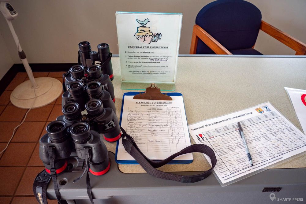 Une fois dans l'enceinte, plusieurs jumelles fixes vous permettront d'observer les oiseaux qui nichent également sur l'île Moku'ae'ae que l'on ne découvre qu'une fois au bout de la péninsule. De petits modèles de jumelles à transporter (adultes et enfants) sont également prêtés gratuitement dans le bâtiment à côté du phare, qui expose quelques panneaux sur les oiseaux ainsi qu'un petit film.