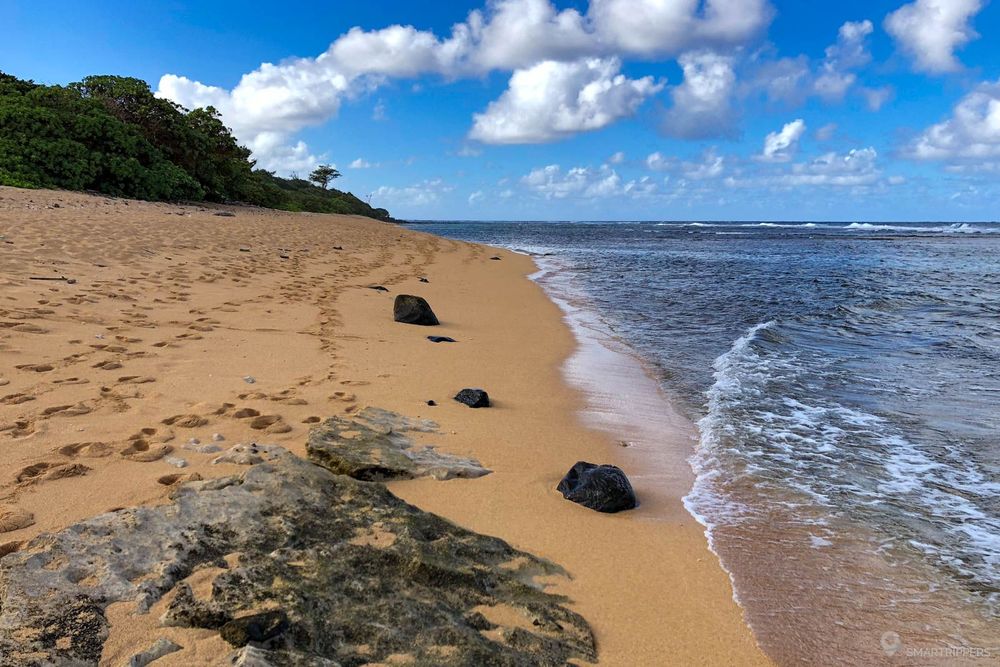 La plage est bordée d'une végétation touffue et qui la rend assez authentique avec de petits rochers qui s'étendent jusqu'au récif par ci, par là. Enfin, vous ne serez pas dérangés par le monde ici, l'occasion de se ressourcer en toute tranquillité! D'ailleurs il n'est pas rare d'observer ici de nombreuses tortues et des phoques moines, qui eux aussi recherchent la tranquillité.