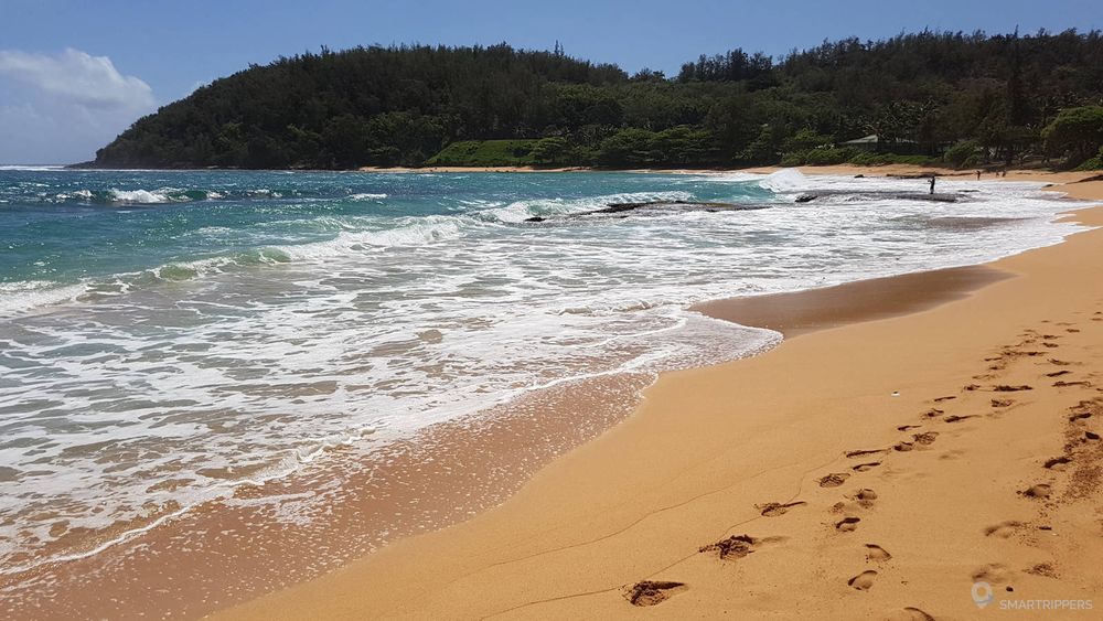 Voici l'une de nos plages coups de coeur de Kauai! Nous avons adoré cette paisible baie au sable fin et à l'eau turquoise, perdue au milieu de la végétation luxuriante et bordée de cocotiers.