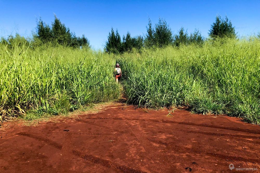 Le sentier descend doucement vers l'océan traversant donc une zone de végétation vraiment dense. En fonction de la saison, vous devrez peut-être vous aider de vos bras pour pousser les hautes herbes qui seront un peu embêtantes sur les premiers mètres.