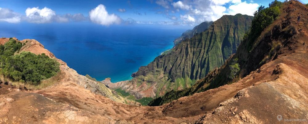 Parmi toutes les randonnées de l'île, voici celle qui nous a le plus marqué. Cette randonnée située dans le Koke'e State Park nous emmène jusqu'au bout d'une crête vertigineuse surplombant la Nā Pali Coast! Le panorama est juste sensationnel!