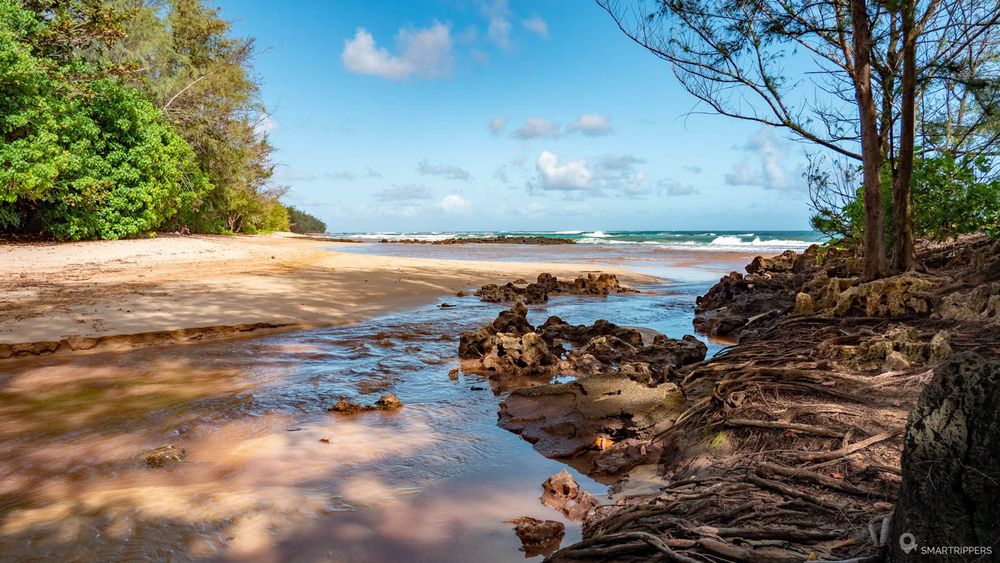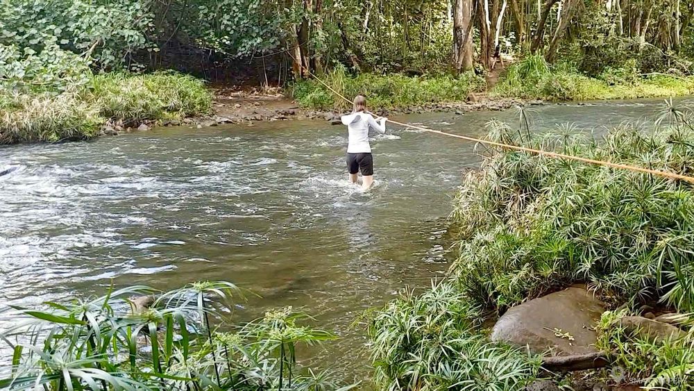 Ce trail mi-terrestre, mi-aquatique de 3,5 km aller-retour à l'avantage d'être plutôt ludique et de nous faire traverser une jungle très luxuriante. Au bout, il sera même possible de se baigner dans le bassin de la cascade! Plus que la beauté de la chute finale, c'est la particularité de mêler une progression aquatique et terrestre qui en fait une randonnée unique sur Kauai.