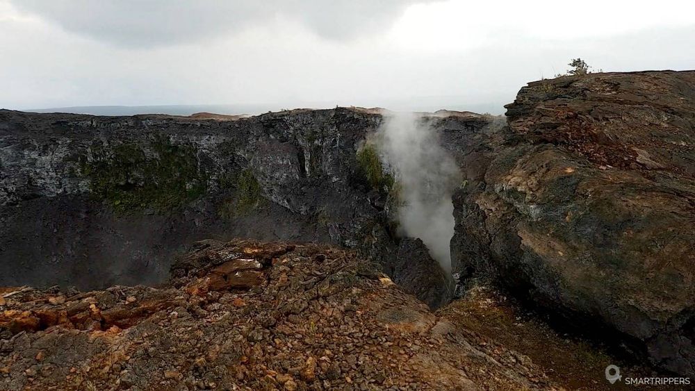 Les plus courageux iront jusqu'au bout de ce long trail qui nous approche jusqu'à la base du Pu'u Ō'ō, l'ancien cratère qui crachait encore son flot de lave jusqu'en avril 2018, mais qui s'est vidé depuis l'éruption dans la Lower East Rift Zone à partir de la même année. Néanmoins il n'est pas nécessaire d'aller jusqu'au bout des 11,2 km pour profiter de ce trail, la balade est déjà bien intéressante jusqu'au Mauna Ulu et la suite du sentier semble assez monotone.