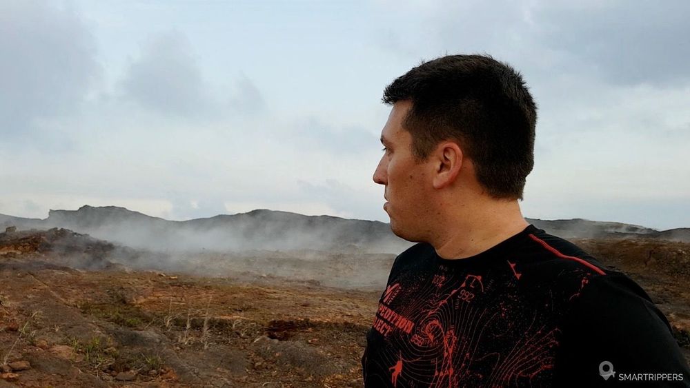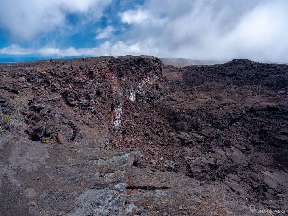 Tout autour de nous, quelques fumerolles nous rappellent que l'activité est encore toute proche, et la chaleur qui s'en dégage ne fait que confirmer que la roche est encore chaude quelques mètres plus bas!