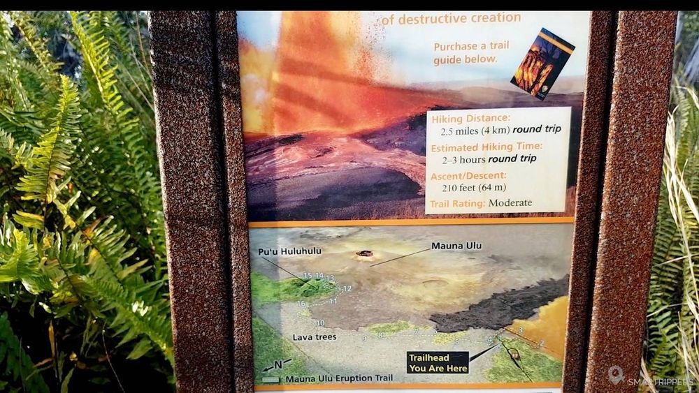 Depuis le parking, un large sentier sans difficulté de 2 km permet de rejoindre le Pu’u Huluhulu. Il suffit de suivre les cairns au travers d'anciennes coulées de lave. Des bornes numérotées sont situées tout au long du chemin et vous donneront des informations sur les conséquences de l'éruption du Mauna Ulu entre 1969 et 1974 (petit guide papier payant au départ du trail).