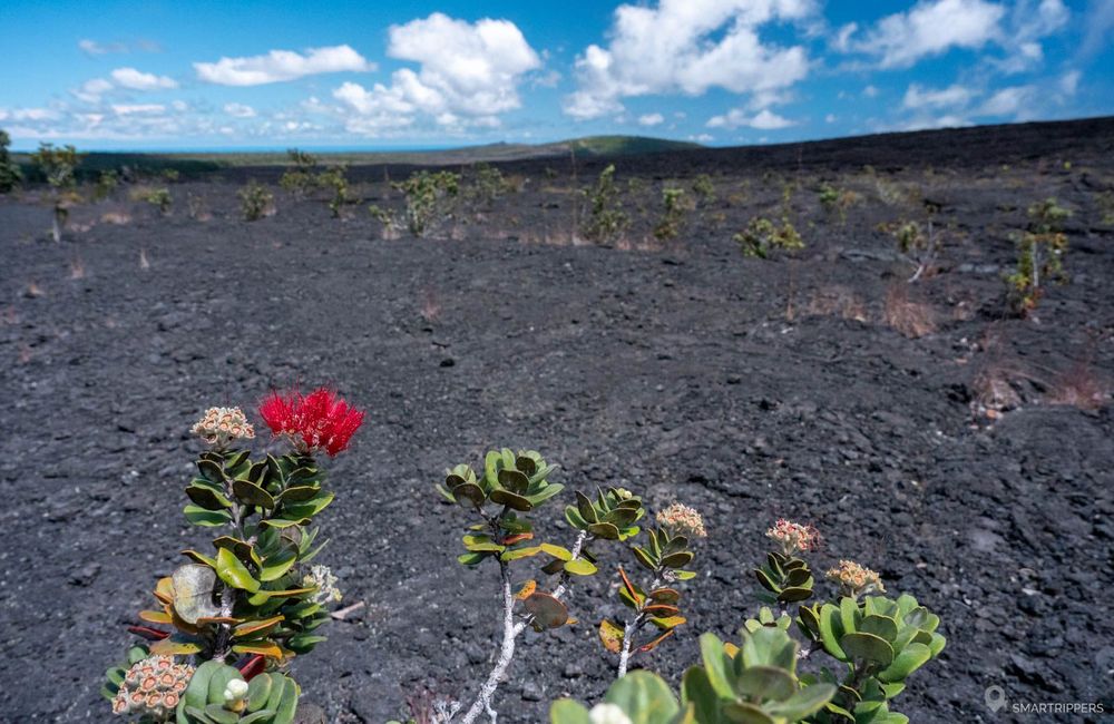 Ici poussent quelques ‘Ōhi‘a, cette espèce endémique d'Hawaii frappée par une dangereuse maladie depuis 2018 qui a décimé une bonne partie des plans de Big Island. Depuis, la protection de l'espèce s'est renforcée.