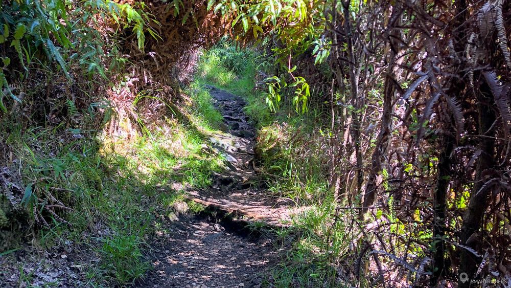 Passé le cratère Alae, le sentier poursuit sa progression vers le point d'intérêt suivant: le Makaopuhi Crater. Ce dernier cratère étant beaucoup moins impressionnant car plus ancien et recouvert par endroit de végétation, nous avons décidé de nous arrêter après avoir atteint un petit promontoire le dominant. Néanmoins il est facile de poursuivre cette randonnée qui continue ensuite en longeant le Makaopuhi Crater avant d'arriver au Nāpau Crater.