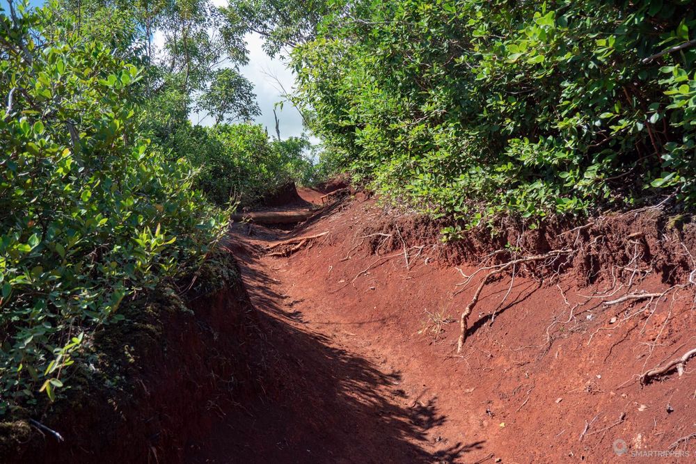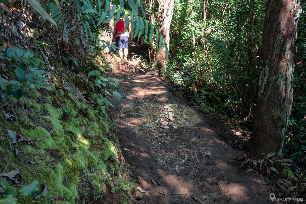 Nous vous déconseillons de faire cette randonnée sous la pluie, ou s'il a plu peu de temps avant. Le sentier risquera d'être vraiment très boueux et glissant surtout vers la fin du trail. Nous avons également constaté que les sentiers à Hawaii étaient tous plus humides en début de matinée à cause de la rosée, la terre s'asséchant au fil de la journée.