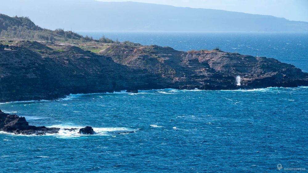Mais l'attraction la plus populaire est le Nakalele Blowhole, un petit geyser formé par les vagues, qui entre en éruption dès qu'une grosse vague s'engouffre sous les rochers. Pour en profiter il faudra que la mer soit houleuse, sinon le jet ne décollera que de quelques centimètres et ne sera guère impressionnant.