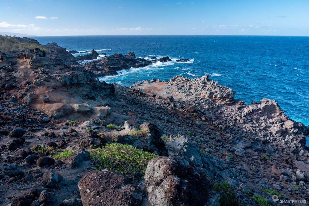 La boucle peut s'effectuer dans les deux sens, selon que vous préfériez commencer ou finir par la section côté mer. Enfin un petit belvédère facilement accessible à quelques mètres du parking permet d'offrir un point de vue sur la côte. Vous y verrez peut-être souffler au loin le Nakalele Blowhole si l'océan est agité.