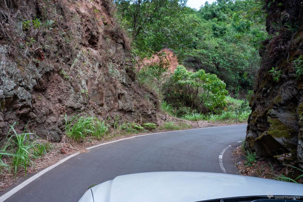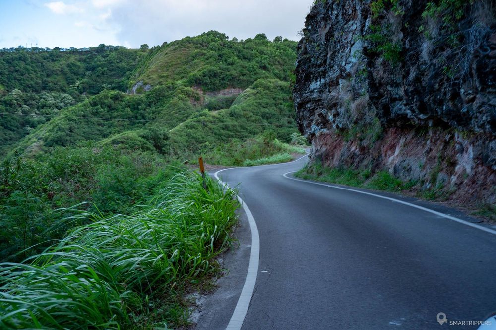 C'est enfin quelques centaines de mètres après avoir passé les Olivine Pools que la route devient vraiment sinueuse et étroite. Elle va bientôt épouser le relief accidenté de l'île pour s'enfoncer dans les gulchs tout en surplombant l'océan Pacifique.