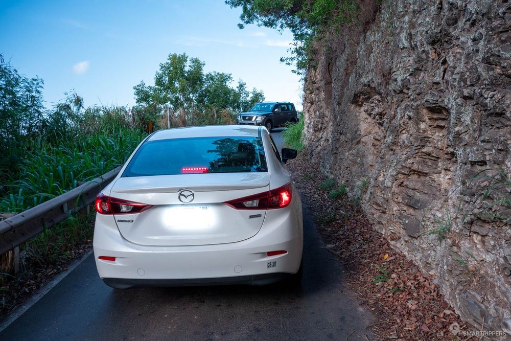 Est-ce vraiment justifié? Personnellement, pour avoir emprunté cette route à plusieurs reprises, elle est certes délicate à plusieurs endroits qui nécessiteront une vigilance accrue car la chaussée est étroite et ne permet pas de se croiser, mais elle ne possède pas de sections vertigineuses comme nous pouvons trouver sur certaines routes de montagne en France ou en Europe par exemple. Il suffira d'adapter sa vitesse aux abords et pendant toutes les sections étroites et être en mesure de faire marche arrière jusqu'à un renfoncement si vous vous trouvez nez à nez avec un autre véhicule. Pour ma part, elle ne m'effraie donc pas.
