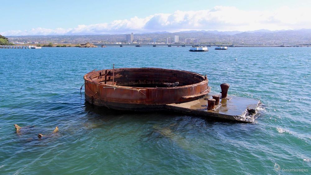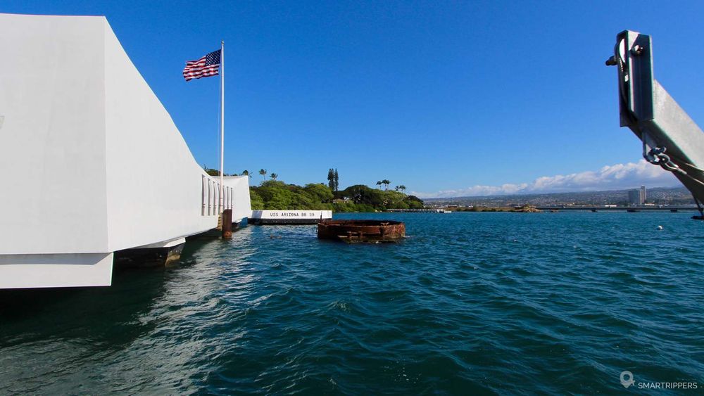 Parmi les bateaux coulés lors de l'attaque de Pearl Harbor, l'USS Arizona est au cOeur de la visite et du recueillement. Le cuirassé américain mis en service en 1916 aura été le plus durement touché par 2 bombes de 800kg, dont une qui traversa le pont pour aller exploser dans la soute à munitions. Bilan: 1 177 morts.