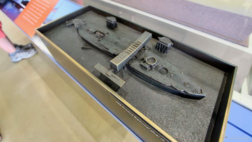 Le Battleship Missouri et le Pacific Aviation Museum sont situés à l'extérieur du complexe, sur la base militaire de Ford Island au milieu de la baie. Il est impossible de s'y rendre par ses propres moyens (on a voulu tenter, mais on vous confirme que c'est interdit). Il faut donc emprunter une navette (gratuite) qui effectue des rotations toute la journée, et les navettes sont bien peu fréquentes (à mon goût!) surtout les jours d'affluence.