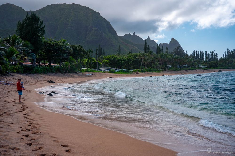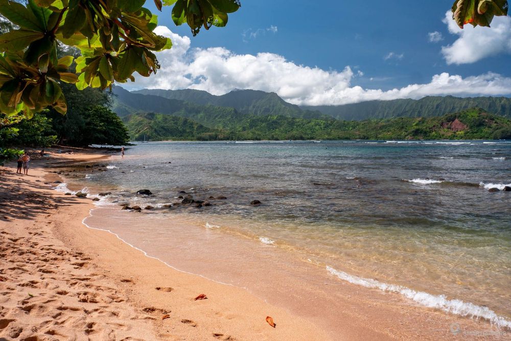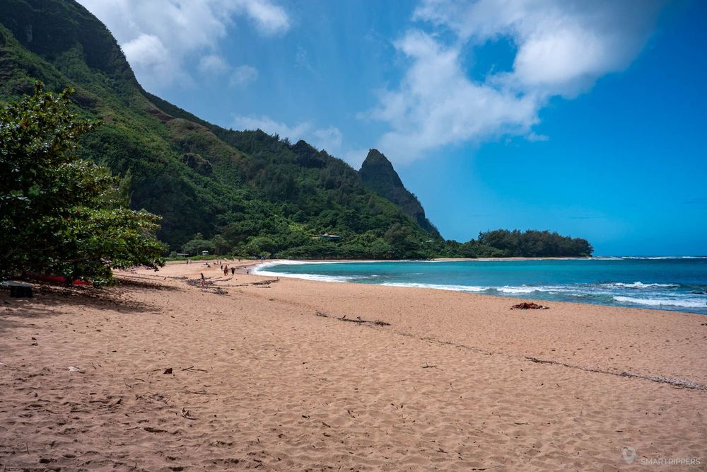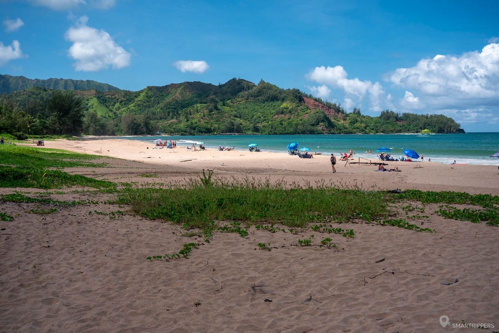 La plage de Ha'ena est intéressante pour les installations de son Beach Park (sanitaires et douches), ainsi que pour son poste de surveillance, ce qui plaira aux familles. Toutefois nous trouvons qu'elle a un peu moins de charme comparée à ses voisines car ici la plage est assez large et assez fréquentée, bien que les ridges en arrière plan lui confèrent un cadre très attrayant.