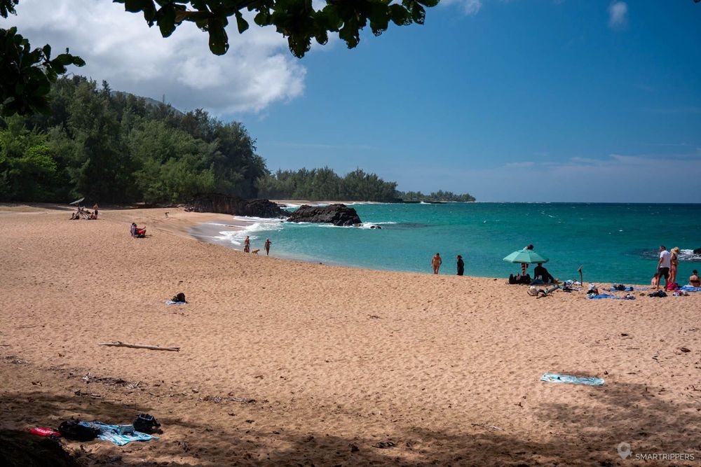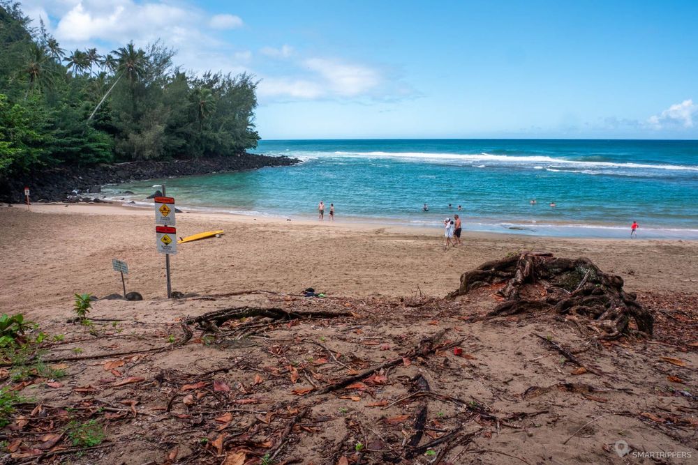 La plage est très facile d'accès car elle est desservie par un grand parking le long de la plage. L'inconvénient est que le parking est très souvent plein dès le matin. La faute aux nombreux promeneurs qui n'ont pas pu obtenir de pass parking pour se stationner au parking du Ha'ena State Park situé plus loin sur la route et qui se stationnent donc ici.