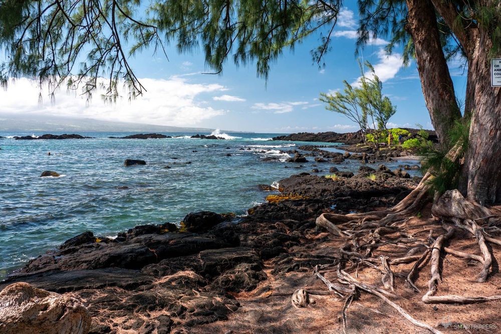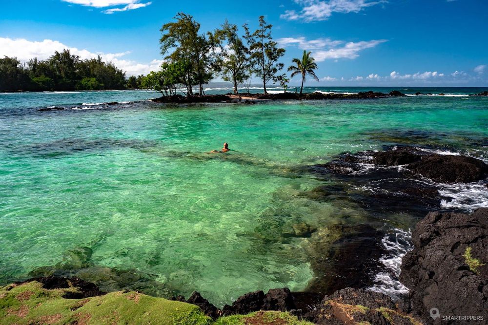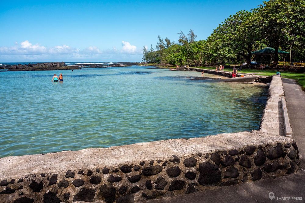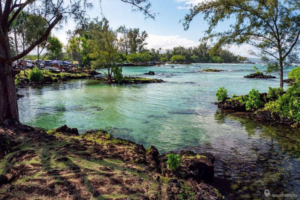 Voici notre coup de coeur dans ce secteur d'Hilo! Ce superbe petit Beach Park est l'endroit idéal pour venir se baigner. Ici les coulées de lave ont façonné un littoral déchiqueté que la végétation a recouvert, formant plein de petits coins pour se mettre à l'eau.