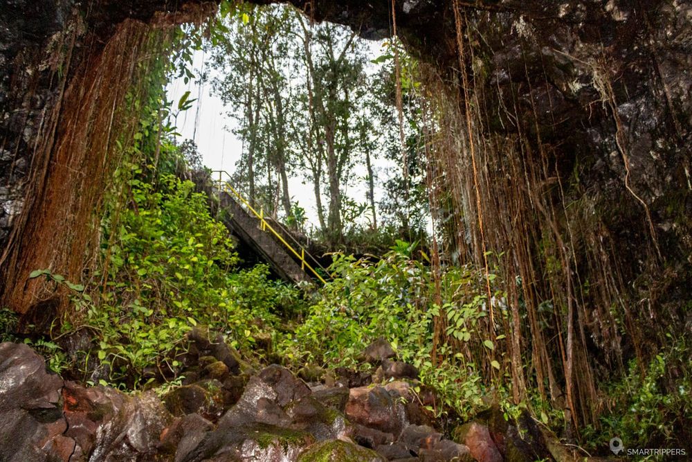 L'entrée des Kaumana Caves se situe en bordure de la route. Un long escalier métallique permet d'atteindre une zone d'effondrement qui offre ainsi la possibilité d'entrer dans le tunnel. Il est possible d'explorer les deux boyaux, mais le tunnel de gauche n'est pas très intéressant car il est vite cloqué par des effondrements. Le tunnel de droite est par contre très intéressant et vous permettra de progresser sur environ 3 km, avant d'atteindre une propriété privée. Vous aurez donc largement de quoi faire!