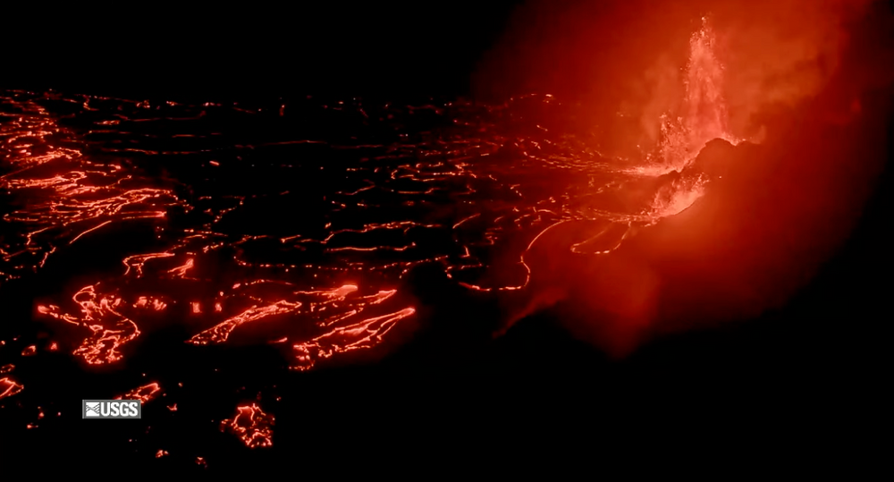 >> Le 23/12/24. L'éruption s'est déclenchée au niveau du sommet du Kilauea, situé au coeur du Volcanoes National Parc. Une fissure s'est ouverte dans le cratère du volcan, projetant de la lave jusqu'à 90 mètres de haut! L'ensemble du cratère a rapidement été recouvert de lave. Cette éruption a surpris les scientifiques par sa rapidité! Un panache de fumée s'échappe actuellement du cratère.