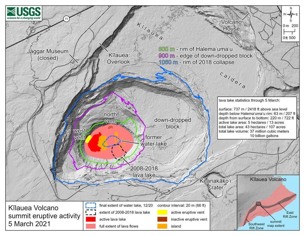 >> Le 5 mars 2021, petit focus sur l'agrandissement de la caldeira avec cette carte de l'USGS qui montre très bien les différentes extensions. C'est impressionnant!