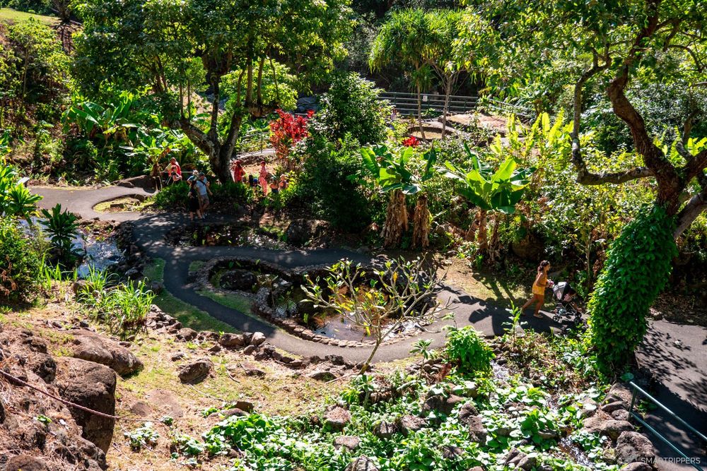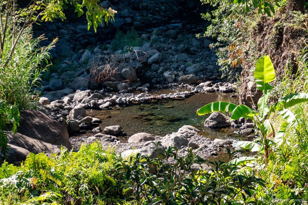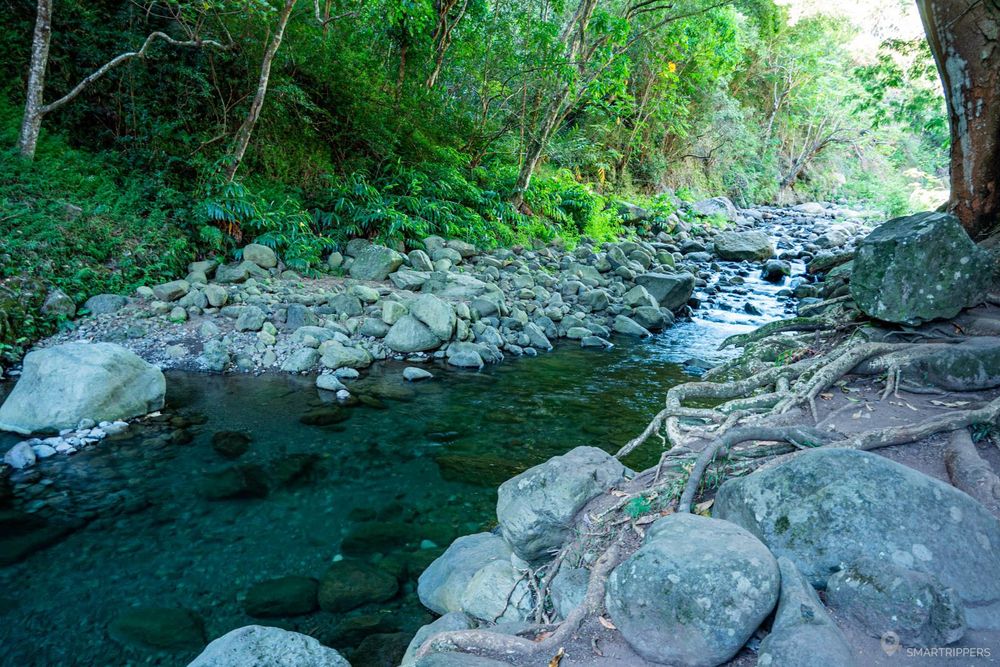 Une courte balade permet de descendre jusqu'à la rivière et de la longer sur quelques dizaines de mètres. L'endroit est très agréable car au frais! L'eau descend directement des sommets de l'Ouest de Maui et est parfait pour une baignade rafraîchissante (voir vivifiante!).